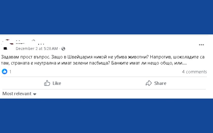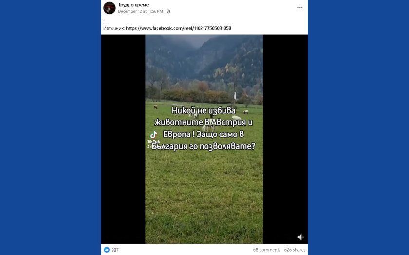 Никой не избива животните в Европа, а единствено в България. И в Швейцария няма случаи на евтанизиране на селскостопански животни. Тези изказвания са публикувани хиляди пъти във Facebook и са споделяни най-много в страниците за земеделие и отглеждане на животни в последните три седмици.