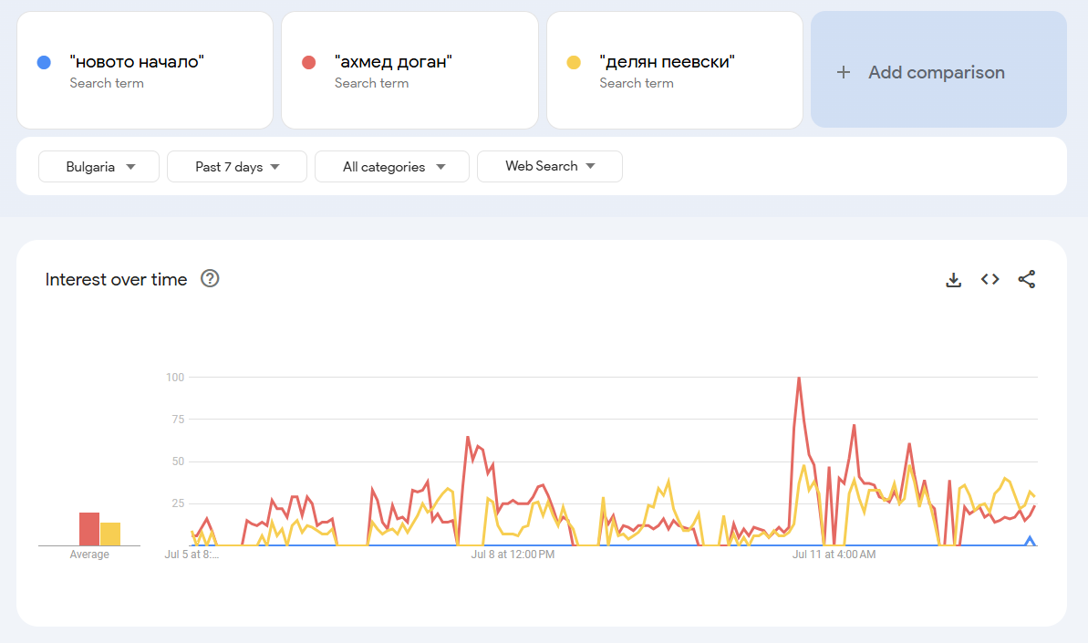 Ако можем да се ориентираме най-бегло по Гугъл Trends - " новото начало " на Пеевски не се наложило по никакъв начин мощно като фраза: