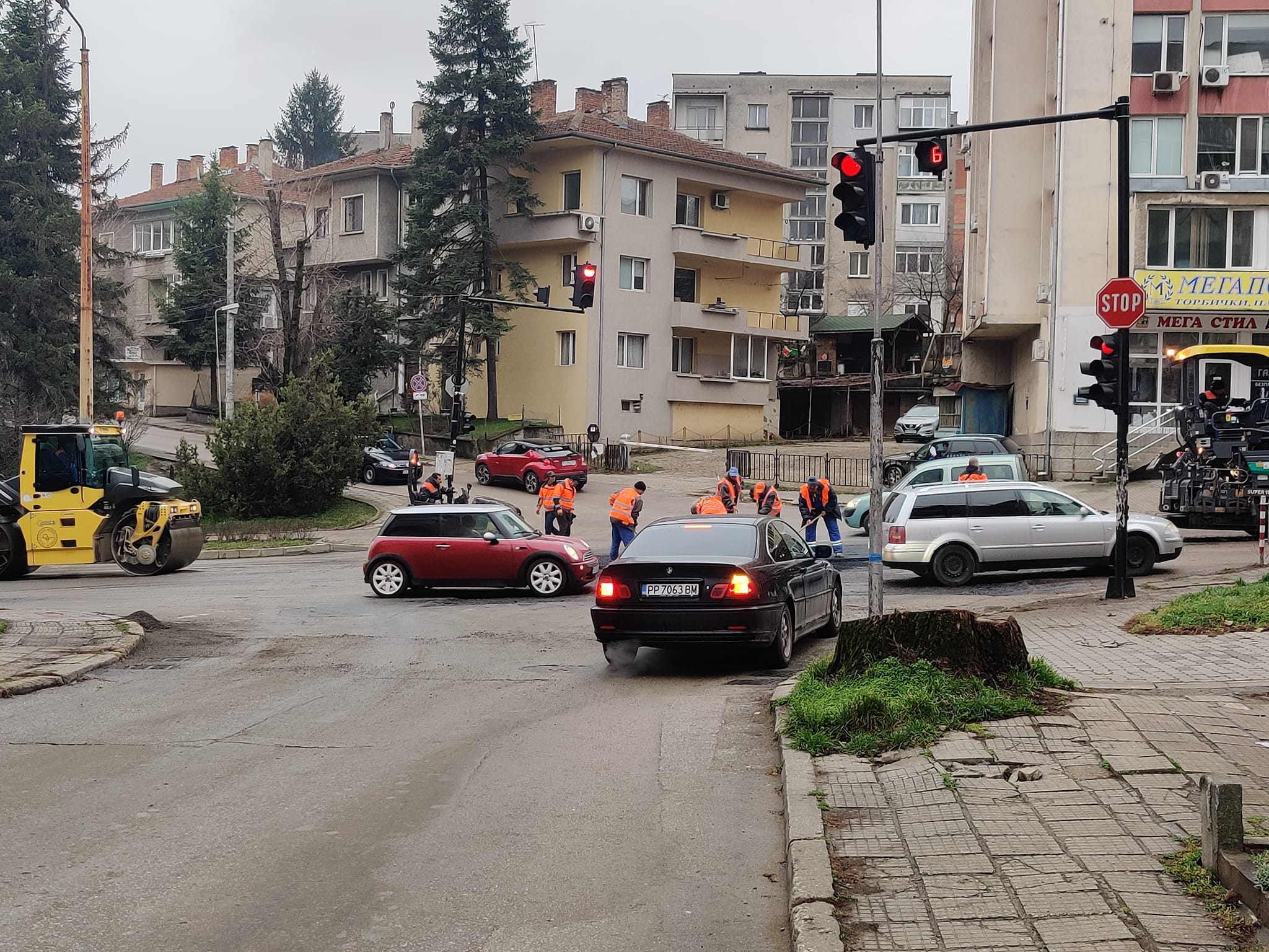 В час пик - 17:00 часа, на светофара на " Ловното " във Велико Търново се правят ремонтни действия. Безумието се добавя от обстоятелството, че трасето не е лимитирано за коли. Потребители на обществената мрежа Facebook настояват, че транспортните средства са прекосявали умерено през току-що положения асфалт.