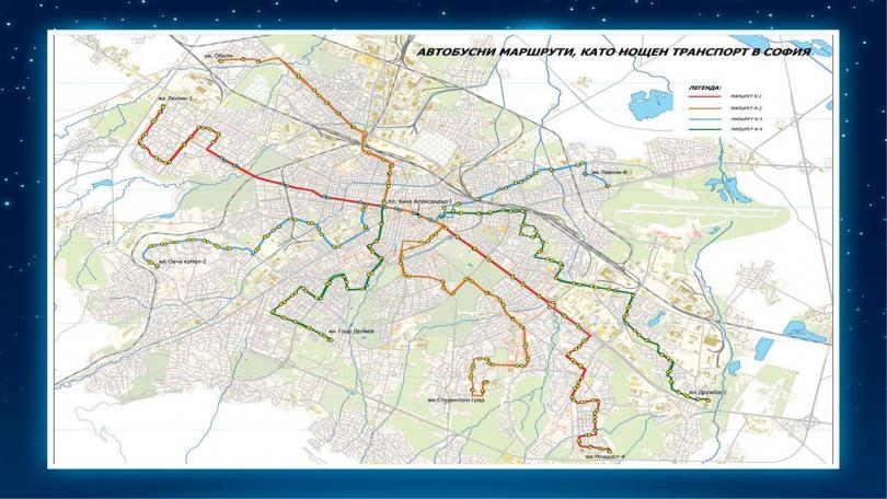 Линиите са 4 и ще пресичат града, тъй че да има връзка с всички квартали. Те ще се движат от 00.00 часа до 04.00 часа. Общата спирка на четирите линии, които ще носят надлежно следните номера N1, N2,N3 и N4, ще е на пл. „ Княз Александър Първи “. Цената на нощната карта за всички линии е 2 лв., а тя ще се продава от кондуктори вътре в рейсовете. Колите на публичния превоз ще имат отличителни знаци за нощен транспорт, а спирките ще бъдат брандирани, тъй че да е ясно, че те минават от там.