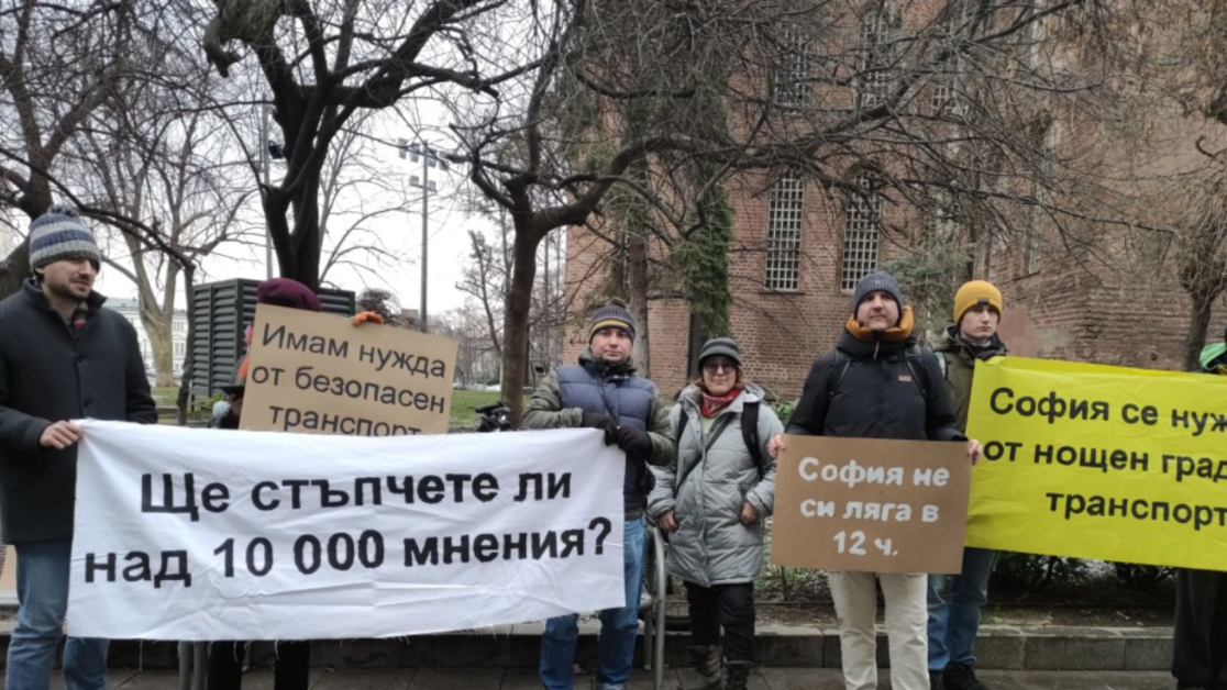 По-рано денем поданици на София излязоха на митинг пред Столичния общински съвет с гледище за нощен градски превоз.