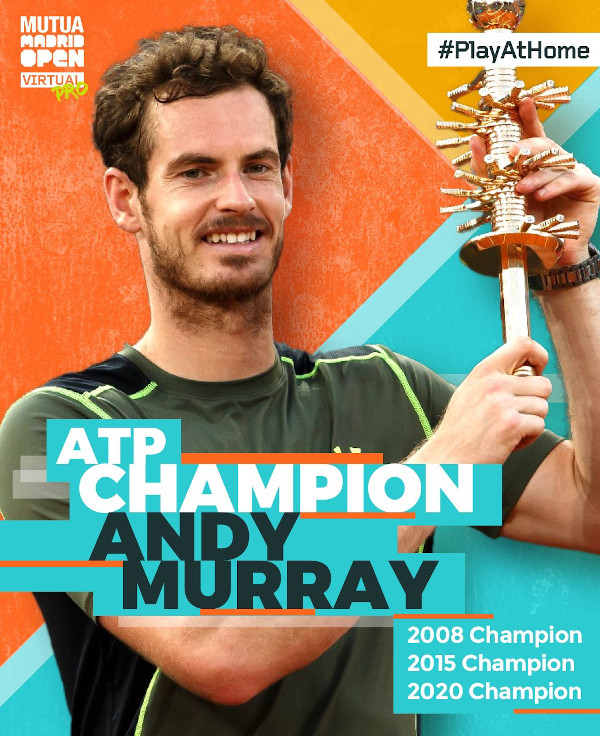 Мъри и Бертенс победиха на виртуалния Madrid Open " Надявам се всички, които са гледали, да са се забавлявали по някакъв метод в тези сложни времена. Ще даря половината от премията ми от 45 000 $ на NHS (Националната здравна работа на Великобритания), а другата половина - на фонда за облекчение на тенисистите ", написа в Instagram някогашният №1 в света, като сподели и своя фотография по какъв начин чества с бутилка скъпо шампанско.