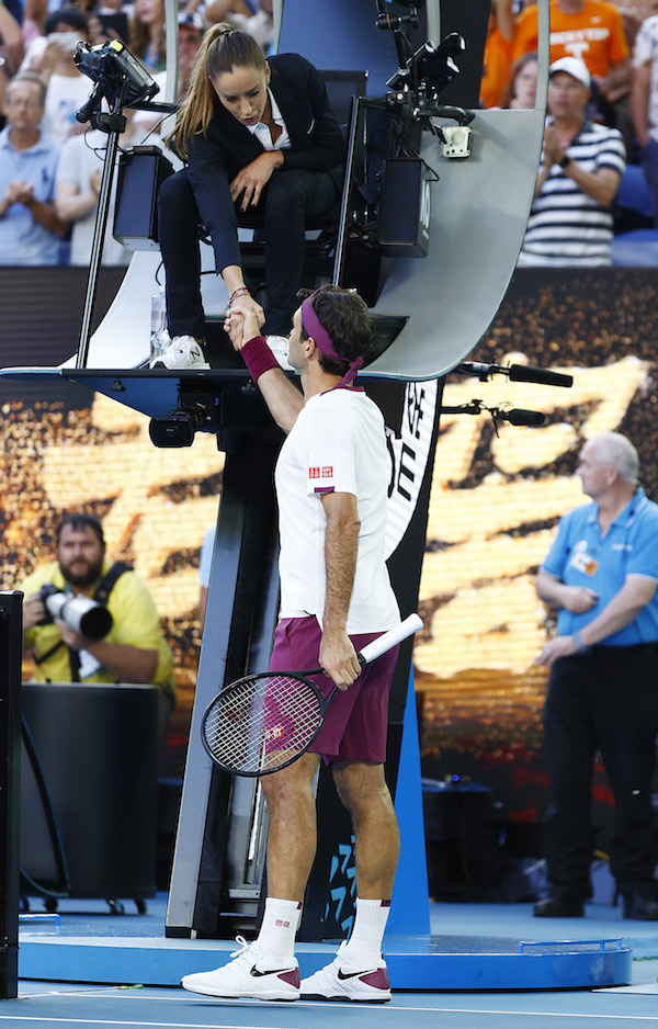 — #todayheadline (@TodayHeadline42) January 29, 2020 Единственият различен случай, в който Федерер е бил глобяван на шампионат от “Шлема” беше на US Open 2009, когато той бе глобен за потребление на циничен език по време на финала с аржентинеца Хуан Мартин Дел Потро, който победи с трофея.