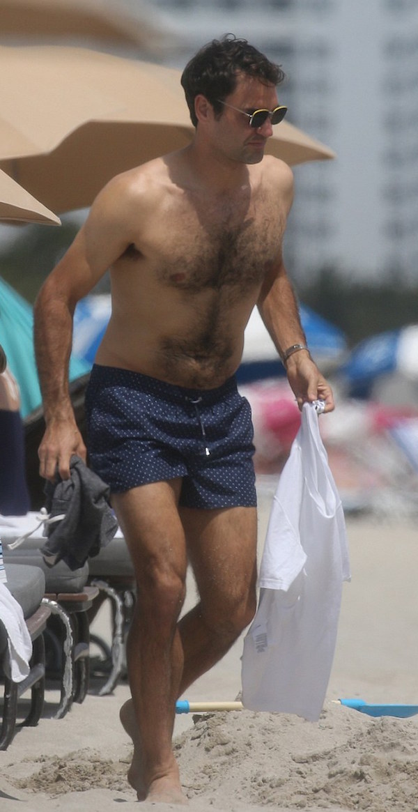 Носителят на рекордните 20 трофеи от “Големия шлем” Роджър Федерер ще стартира след часове присъединяване си на “Мастърс”-а в Маями. 36-годишният швейцарец ще излезе на корта против австралиеца Танаси Кокинакис в дуел от втория кръг, защото пропуща първия по право. След трагичната загуба на финала в Индиън Уелс от Хуан Мартин Дел Потро в неделя, Федерер имаше потребност от малко отмора и в Daily Mail към този момент се появиха фотоси на разпускащия по бански на плажа в Маями Роджър.