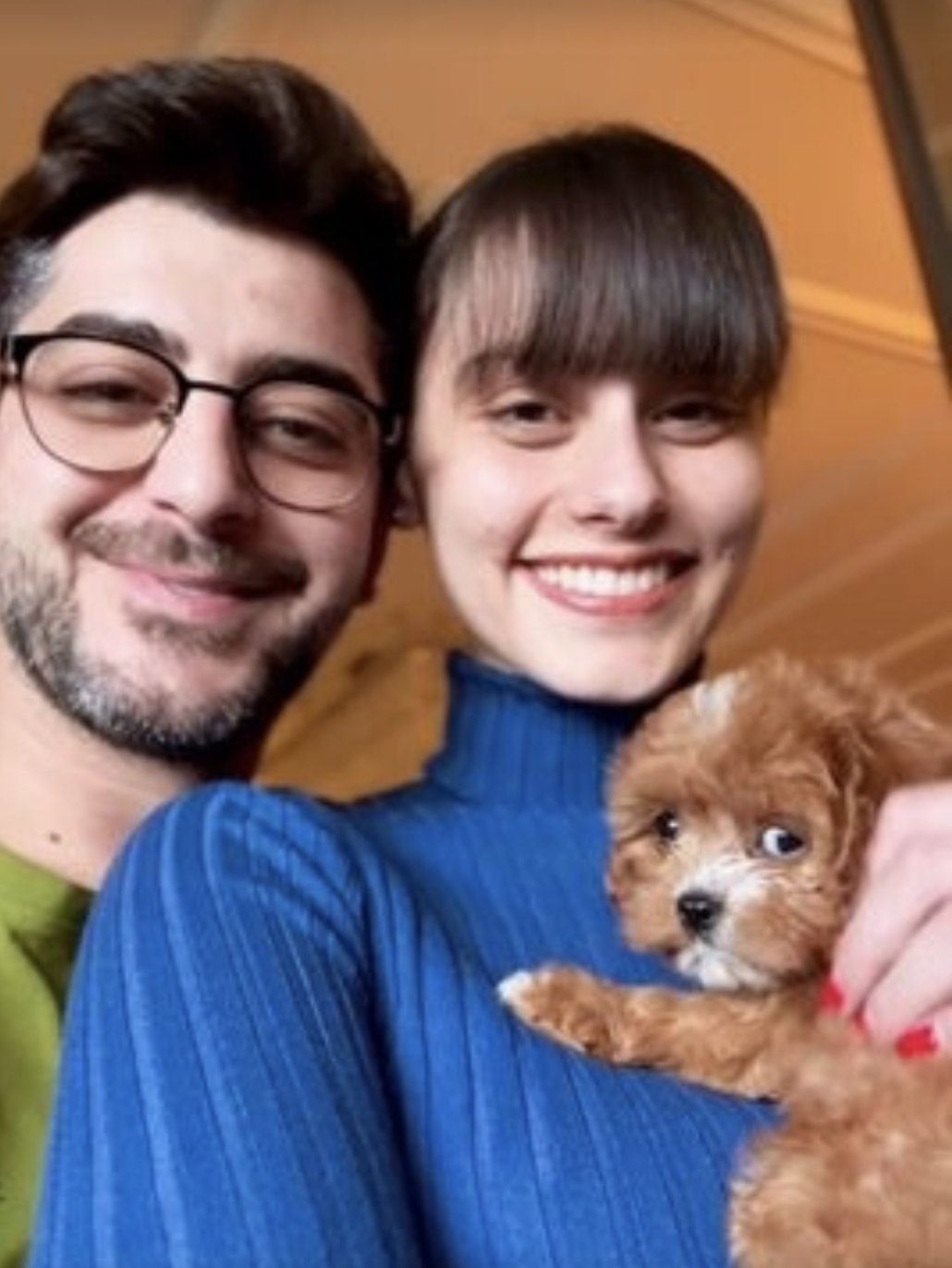 Нов член имат в фамилията си влюбените Александър Кадиев и Ивелина Чоева. Красавицата към този момент гушка малко сладко кученце от породата " Той пудел ".