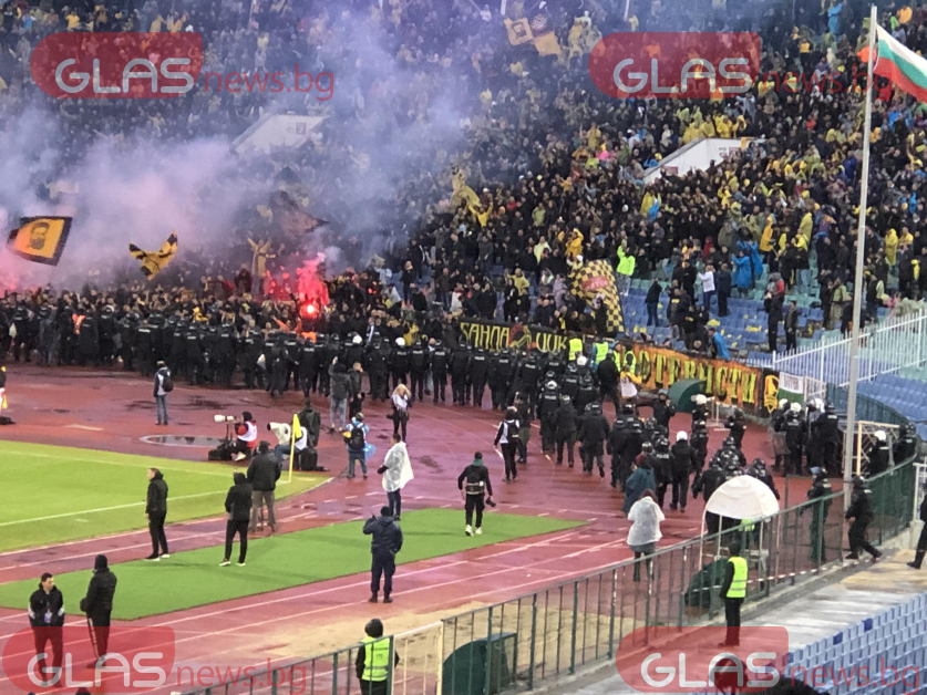 Това задейства незабавно органите на реда. Кордон обкръжи целия Сектор Б в подножието му и част от Сектор В. Впоследствие почитателите се върнаха още веднъж на трибуната.