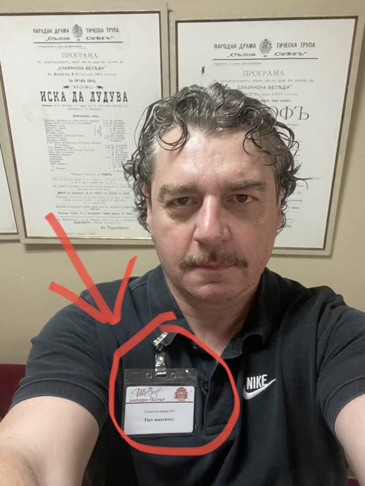 На 27 юни вечерта на огромната сцена се играе една от касовите постановки на Александър Морфов " Животът е прелестен ". Двама от актьорите с основни функции - Камен Донев и Теодор Елмазов иронизираха обстановката, като разгласиха във фейсбук своите баджове на " Гост клиент ".