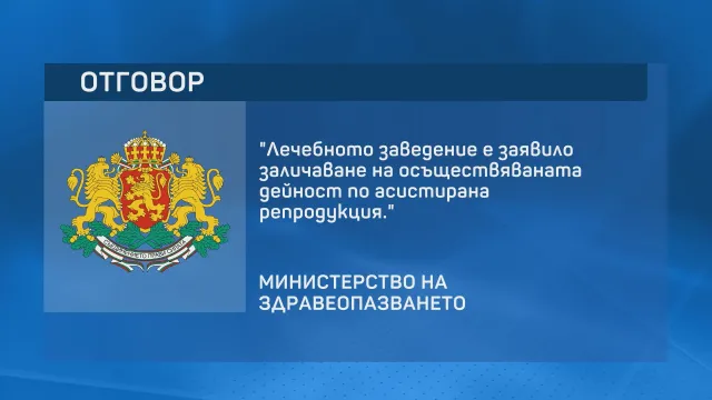 " Лечебното заведение е декларирало изтриване на реализираната активност по асистирана репродукция ", прибавят от Министерство на здравеопазването.