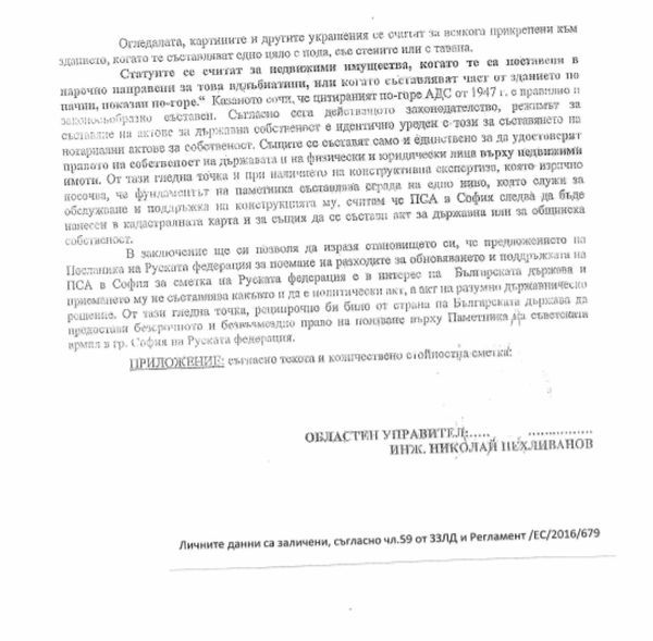 В умозаключение на писмото си Пехливанов, който беше назначен на значимия пост като представител на путинистката партия “Атака “, показва свое мнение по въпроса, че това е “в интерес на Българската страна и приемането му не съставлява какъвто и да е политически акт, а акт на рационално държавническо решение “.