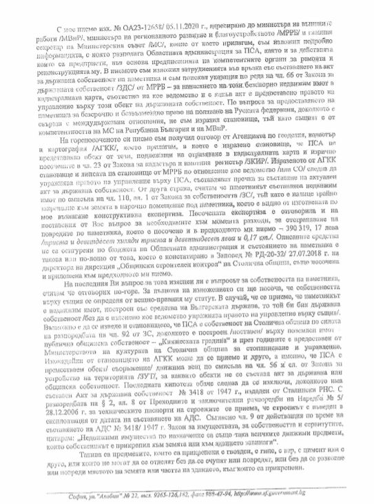 Бившите депутати Мартин Димитров и Петър Славов са поискали по Закона за достъп до информация цялата скандална кореспонденция за ориста на паметника. Сред нея е и документът, от който излиза наяве, че Руската страна безочливо и безогледно е желала безплатно да стане притежател на скандалния паметник.