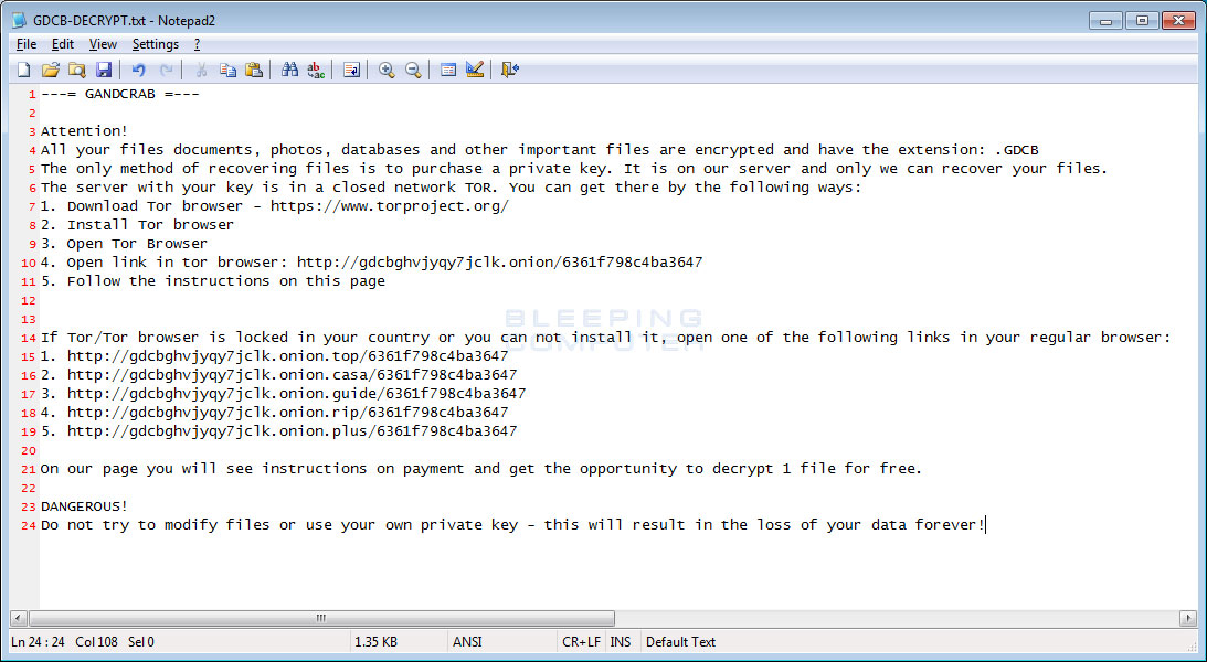 За информацията ви към този момент е късно, а на работния плот се появява текстови файл, даващ инструкции на негоден британски за това по какъв начин да си възвърнете значимите файлове.