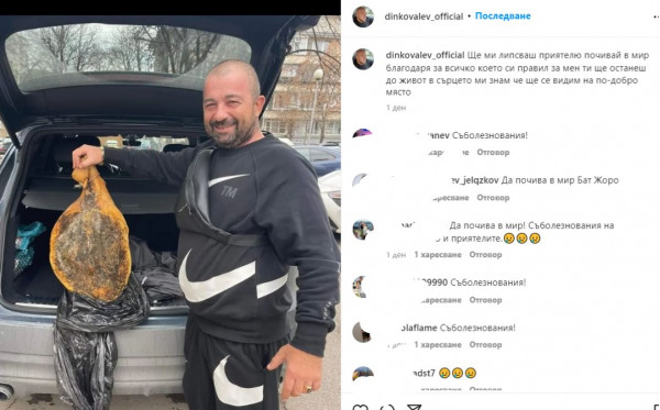 " Ще ми липсваш, приятелю. Почивай в мир. Благодаря за всичко, което си направил за мен. Ти ще останеш до живот в сърцето ми. Знам че ще се забележим на по-добро място ", написа Динко.