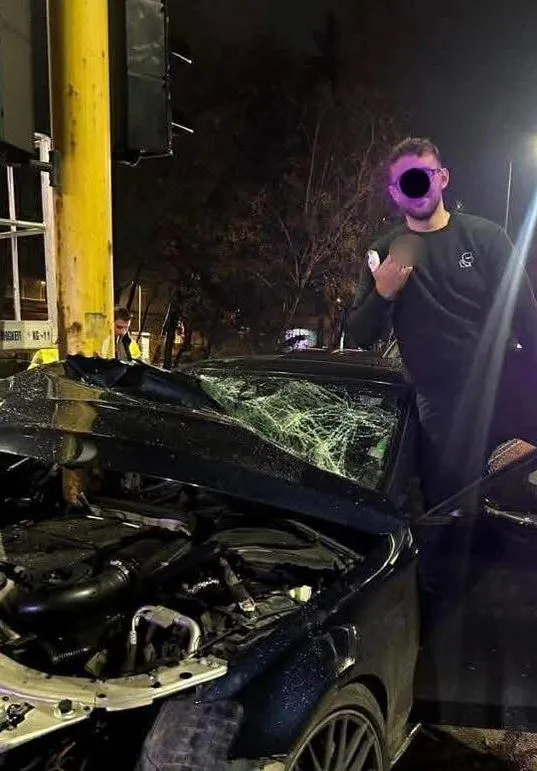 В обществените мрежи се появи и провокативна фотография на младежа. На нея той е изправен до размазания седан, като е посочил междинен пръст, а на лицето му грее усмивка.
