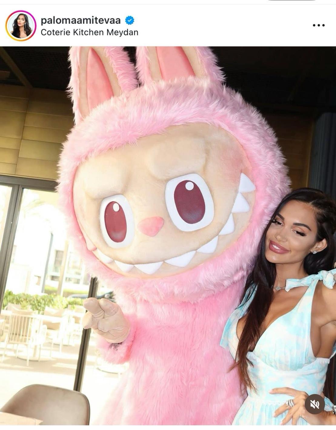 Палома показва максимален „ обществен авторитет “ с голямото си Лабубу, което е три пъти по-голямо от фината певица.