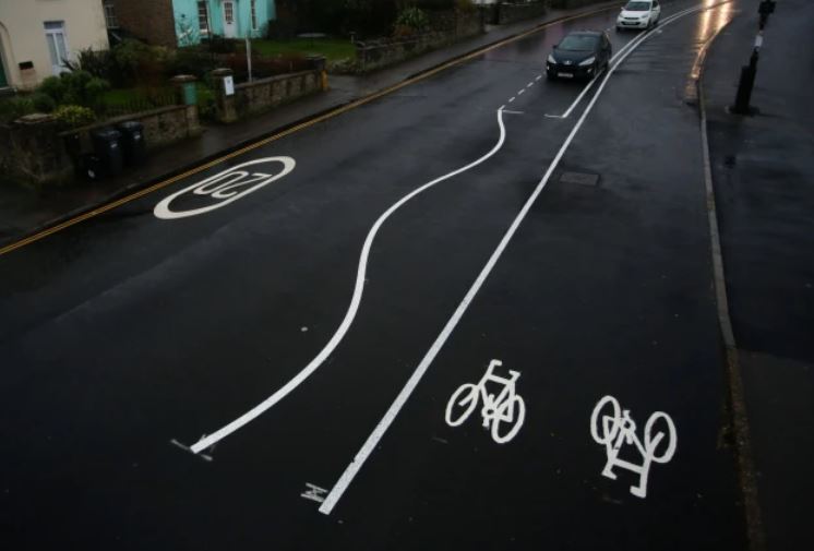 „ Криволичещите линии са противоположни алеи, с цел да разрешат на транспортните средства да завиват без да пресичат бялата линия, “ разяснява жена нововъведението.