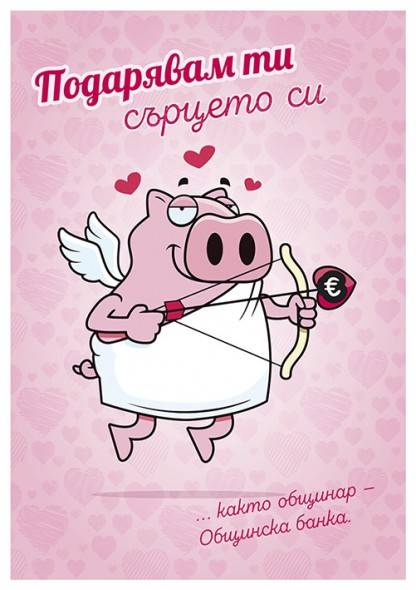 Картички за Св. Валентин - с прасенце и отпратки към политическата действителност