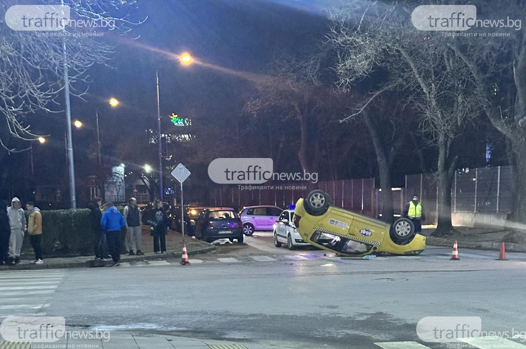 Нова тежка катастрофа в Пловдив! Такси се обърна по таван