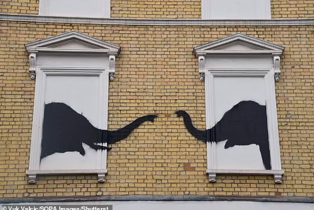 Във вторник Банкси разгласява фотография на два силуета на слонове с протегнати един към различен хоботи.