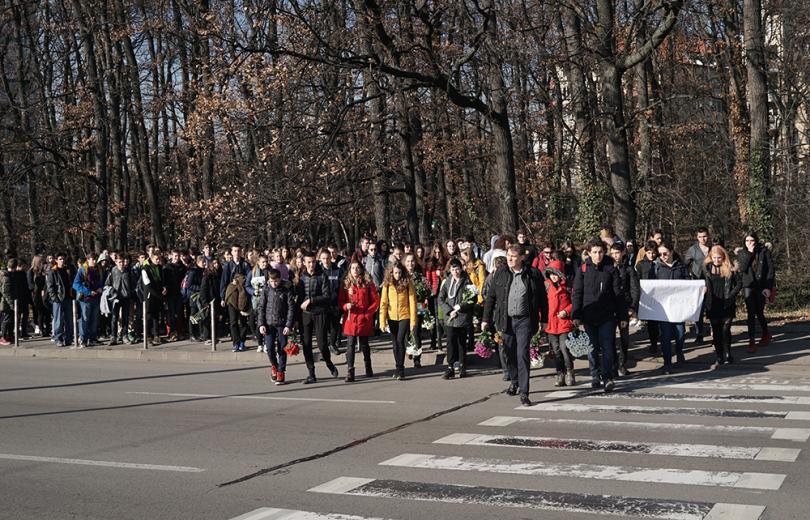 В 13 часа през днешния ден бул. Никола Вапцаров притихна. Съученици, другари, учители и родители пристигнаха, с цел да оставят цветя и да възпламенят свещ на мястото където в петък 13-годишно момиче загуби живота си, а друго 14-годишно бе ранено.