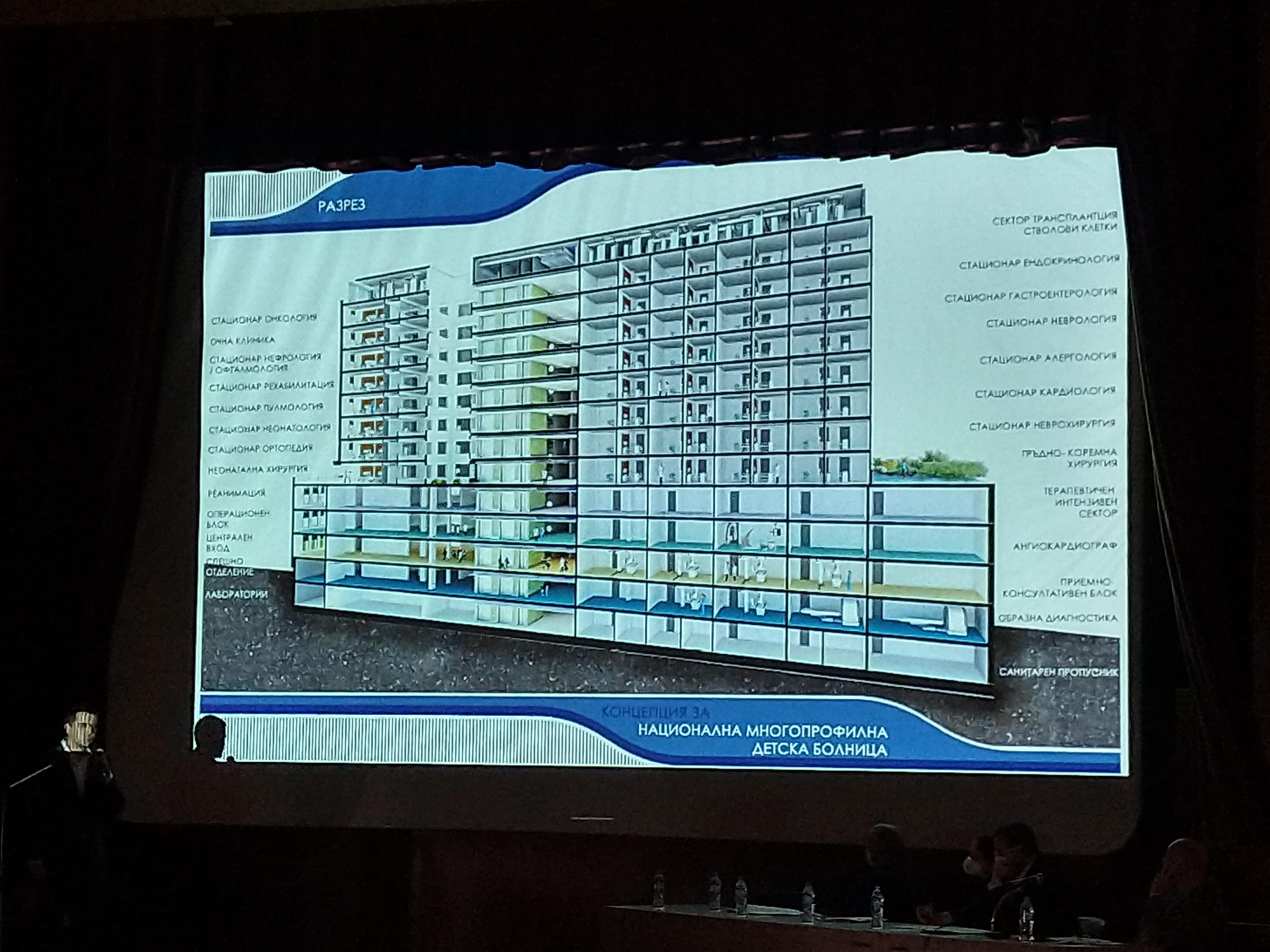 На 10-я етаж ще бъдат клиники по ендокринология и травматология, а на последния онко-клиники и бранш за трансплантация на стволови кафези, планува концепцията.