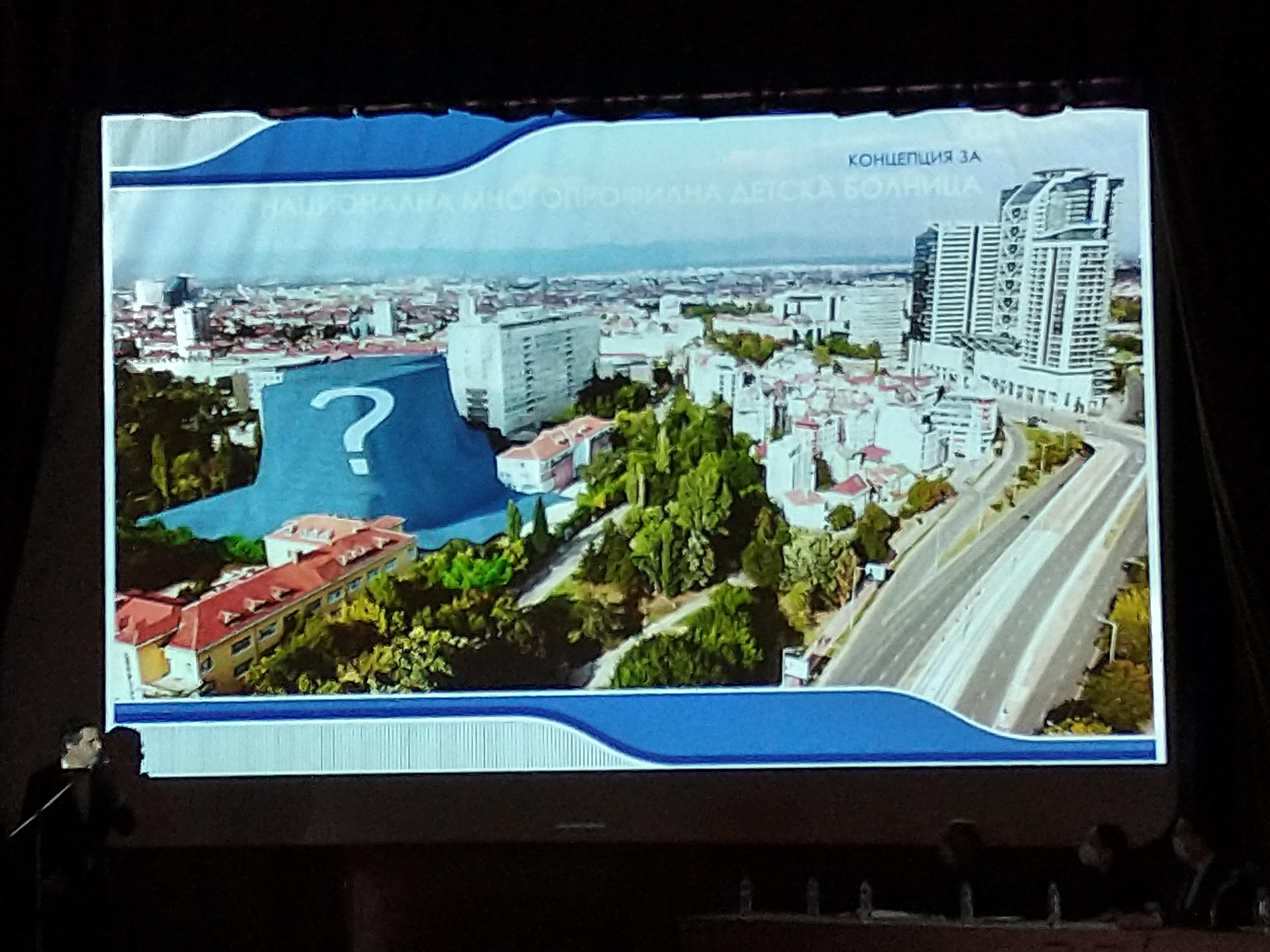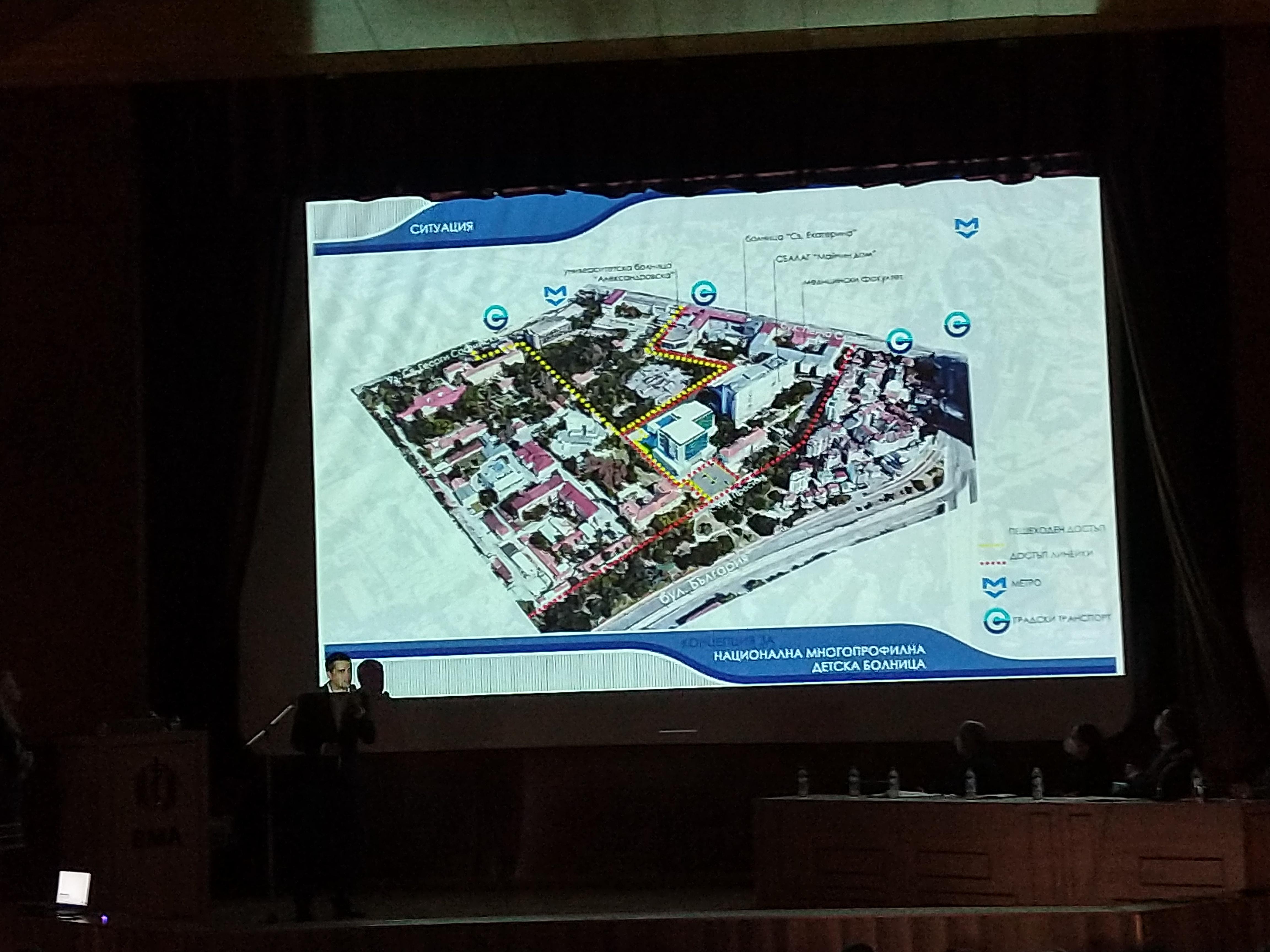 Той показа посредством визуализации архитектурната визия на постройката, достъпите до нея, спирките на метрото и градския превоз, разположението на отделенията и упования потенциал.