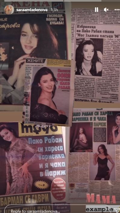 Новата Мис България, Сара Младенова, има от кого да е наследила си, видя първи Hotnews.bg. В стори в инстаграм най-красивата нашенка за тази година сподели майка си, която е била ентусиазъм не за кого да е, а за самия Пако Рабан. Известният моделиер даже кани родителката ѝ Соня Петрова в Париж. В края на 90-те години Рабан бе в България и тогава не скрил възхищението си от хубавицата. Брюнетката е печелила и конкурс за у нас тъкмо като щерка си и е станала Мис Златни пясъци през 1996 година.