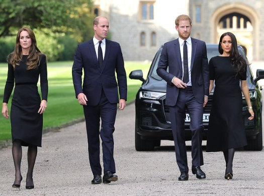 Уилям, Хари, Кейт и Меган ненадейно загърбиха разликите си, събраха се и разгледаха цветята и картичките, положени от събралите се хора, отдаващи почитта си към монарха. Всъщност кралски източник сподели, че Уилям персонално е поканил брат си и снаха си да се причислят към него в разходката, защото и двете двойки са отседнали в Уиндзор.