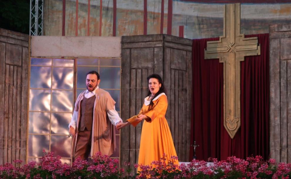 Българска телеграфна агенция Представлението се трансформира в незабравимо събитие в летния културния живот на Плевен с яркия певчески екип, обилни декори и с присъединяване на над 200 души -- Плевенската филхармония, Общински хор " Гена Димитрова " с диригент Анелия Дечева, вокална група „ Арлекино ” с началник Виолета Боянова. Приковаха вниманието солистите, които са оперни артисти с интернационална кариера - Таня Иванова - сопран, в ролята на Флория Тоска, Даниел Дамянов - тенор, в ролята на Марио Каварадоси, Венцеслав Анастасов - баритон, в ролята на Барон Скарпия и други. Режисьор на спектакъла бе Надежда Христозова. Летният спектакъл в Плевен сътвори красиво единство на изкуството с величествена природа и това добави спомагателен висок градус на страстите, което провокира продължителни аплаузи на финала. Не инцидентно мястото е наричано магическо и от публиката и от артистите, и всяко лято събира звездни имена и техни почитатели.