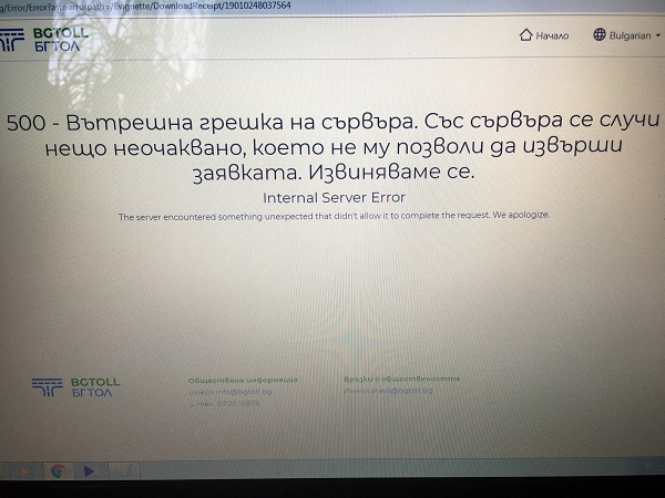 „ Системата bgtoll не работи… изписва за систематични неточности след както е минало заплащане. На някои мои познати въобще не им се приема заплащане. Направих опит да закупя годишна винетка по ел.път, 97 лева са изтеглени от картата, обаче нито можеш да изтеглиш в електронен вид, нито система я препраща на мейл. И не знам все още – дали сякаш закупената винетка е годна въобще? Националния телефонен номер от два дни дава единствено заето, по никакъв метод не можеш да се свържеш с операторите им, не знаеш към кого да се обърнеш! Към момента нито една бензиностанция, нито пощенски клон, нито офиси на EasyPay не продават винетки… единствено на OMV можеш да закупиш седмична. На уеб страницата им не посочен нито един адрес с въпросните пос-терминали за заплащане в кеш!!! Какво да приказваме за хора, които нямат опция да борявят с електронни системи за заплащане!!! А по новините единствено вървят заканите за санкции и така нататък Кой носи отговорността в тази ситуация? Към кого да се обърна?! ” , пита тя.