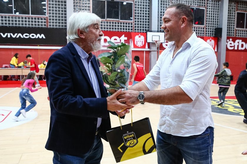Легендарният баскетболист и треньор Петко Маринов също получи обществена признателност за приноса си и плакет от клуба. Роден в Бургас през 1949 година, свръхестествен стрелец, спечелил с алената фланелка три шампионски трофеи и четири Купи на България, играл и на два европейски клубни полуфинала. „ Петко, майсторе “, както го посреща публиката, продължава пътя си в ЦСКА като треньор и печели три трофеи през 80-е години и още четири Купи на страната за „ армейците “.