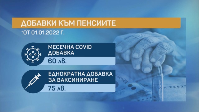 От януари възрастните ще получават 60 лева Коронавирус добавка вместо 120 лева, които взимаха последните месеци. Ако са имунизирани против ковид, ще получат еднократно 75 лева с пенсията за февруари.