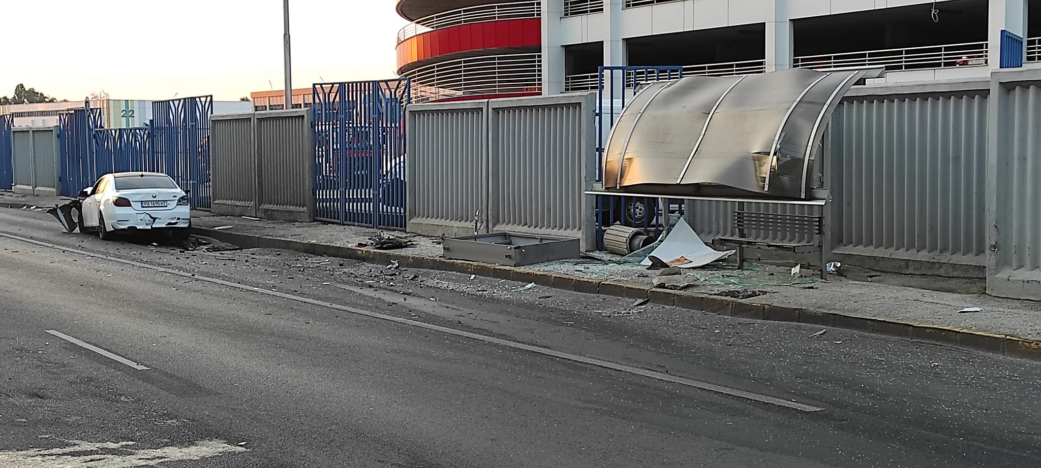 Към тази заран, разпилени елементи от колата и спирката, са към момента по пътното платно.
