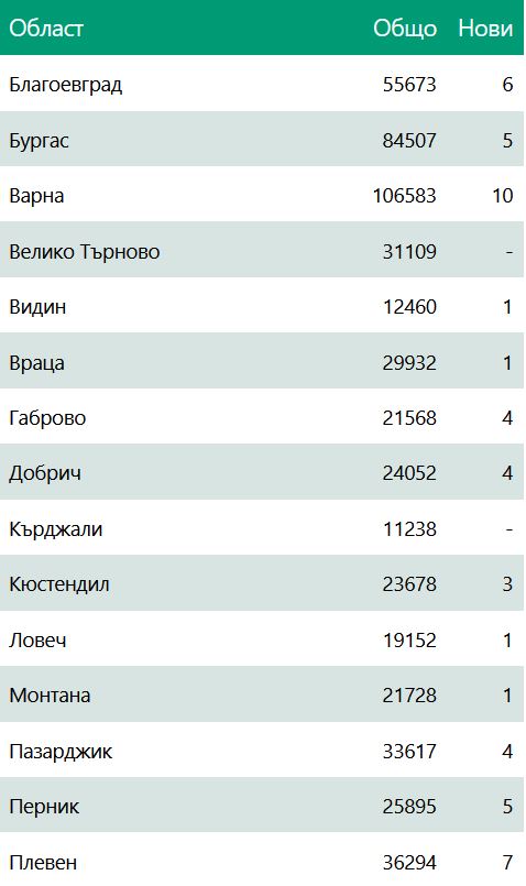 Ето по какъв начин са разпределени новизаразените по области: