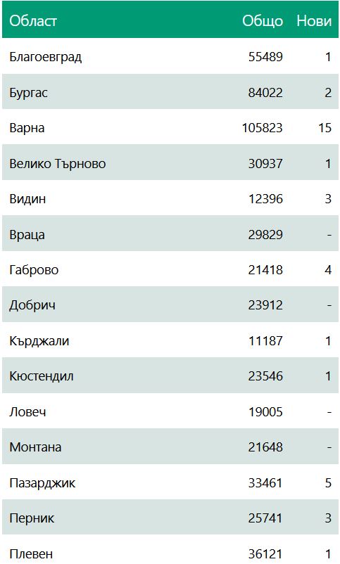 Към днешна дата в болница са 340 души с диагноза COVID-19, от които 36 са в интензивно поделение. Новопостъпилите в болница са 29. Излекувани през последното денонощие са 45 души, а общо от началото на пандемията - 1 249 414.