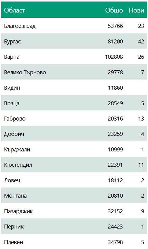 Ето по какъв начин са разпределени новозаразените по области: