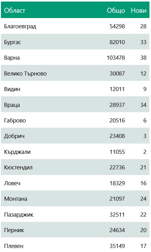 Вижте по какъв начин са разпределени нововзаразените по области: