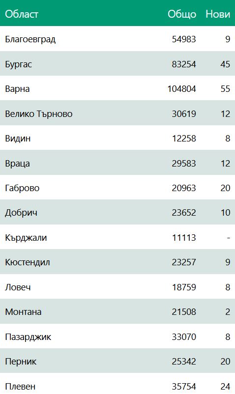 Ето по какъв начин са разпределени новозаразените по области: