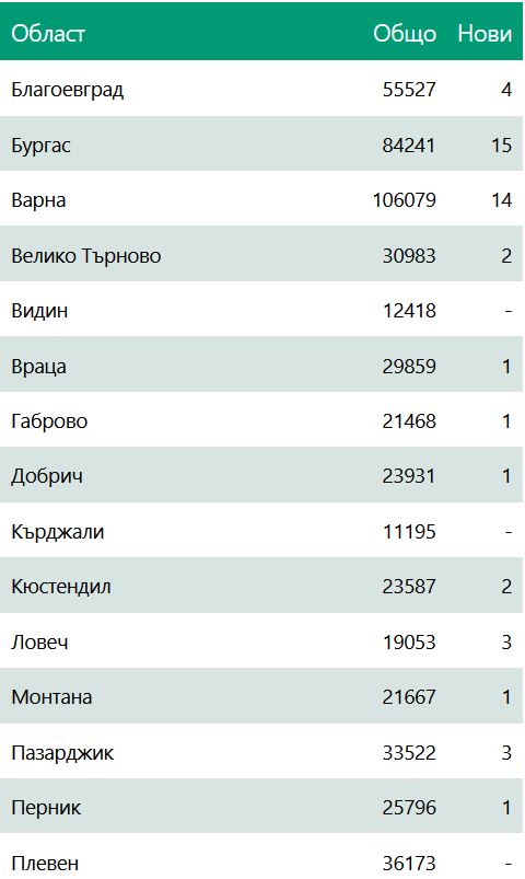 През последните 24 часа са сложени 245 дози ваксина против ковид, а общо от началото на имунизационната акция - 4 604 956. Общо 38 136 души у нас са изгубили борбата с заболяването от доказаните 1 293 949 инфектирани от началото на пандемията.
