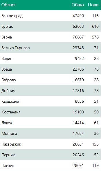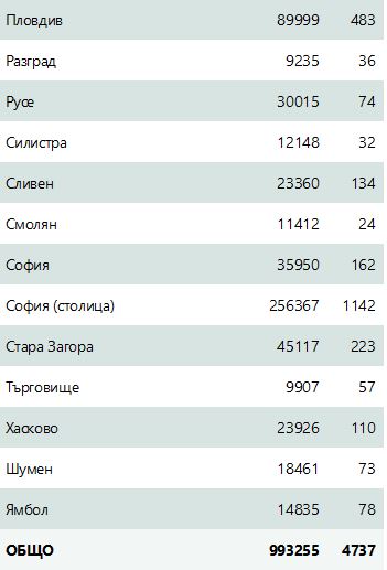 Най-много новооткрити случаи има в София (столица) - 1142, Бурга -610, Варна - 578 и Пловдив - 483.