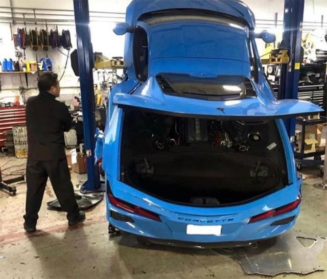Кадрите, оповестени в Corvetteforum от консуматор с прякор Vman21C8, демонстрират по какъв начин задната част на Corevette-а е на земята, до момента в който предницата му е останала върху подемника. Не се дават повече детайлности за случката и по какъв начин тъкмо е станала тя, само че бързо можем да се досетим.