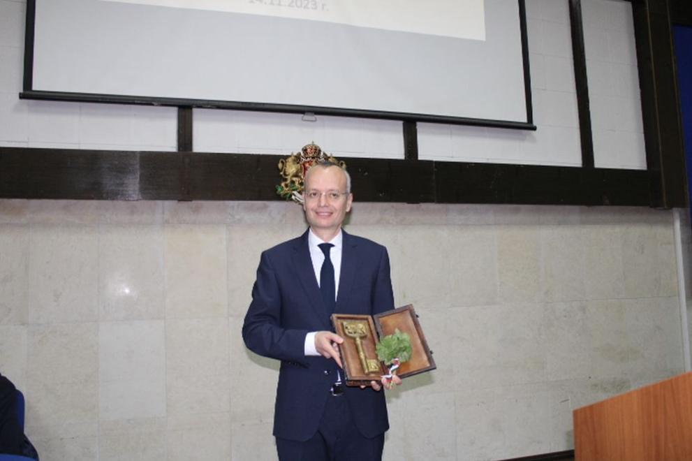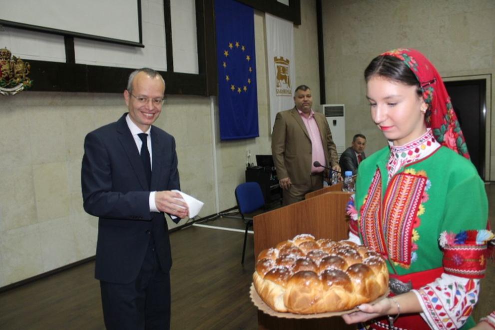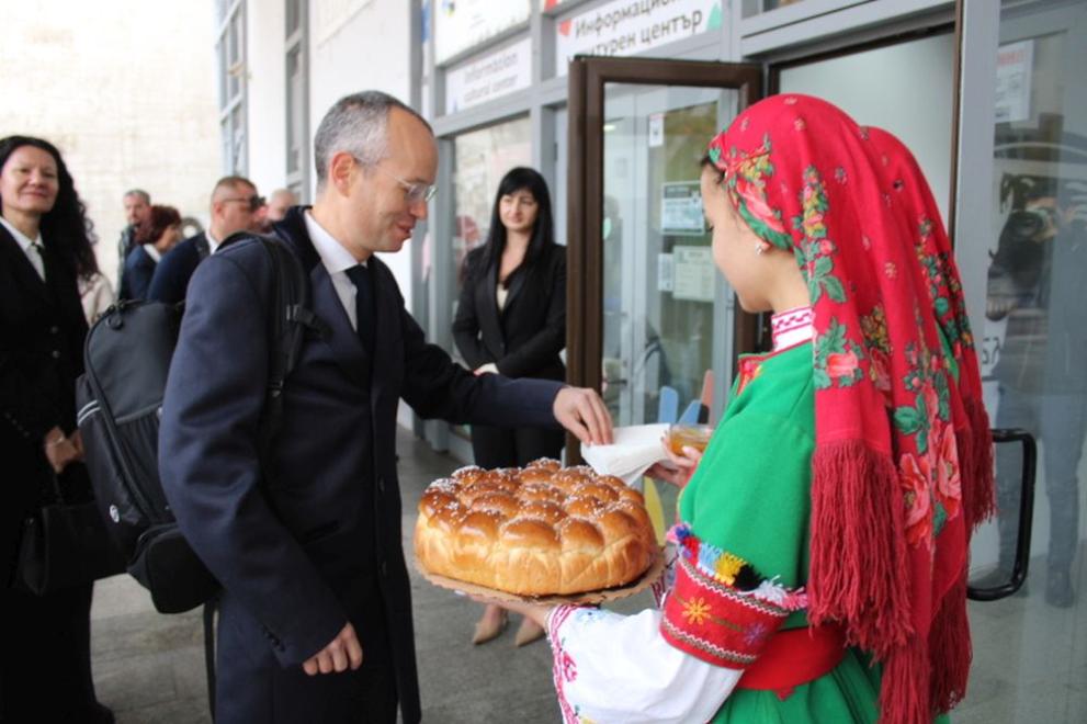 Той одобри символичния ключ на Община Благоевград от Мария Петрова, зам.-кмет по стопанска система, финанси и европейски планове. „ Нека покажем, че в дух на съгласие локалната и държавната власт могат да работят в синхрон в името на развиването на общината “, сподели Мария Димова.
