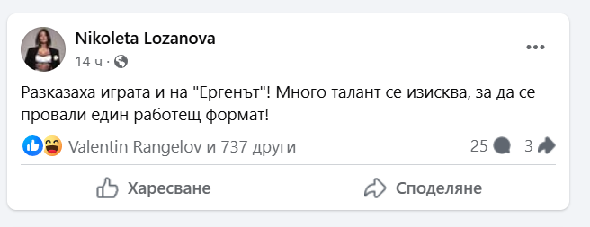 От неин коментар под поста пък става ясна и повода за гнева - рокадата в екипа, което съгласно Лозанова е влошило и качеството на продукцията, написа show.blitz.