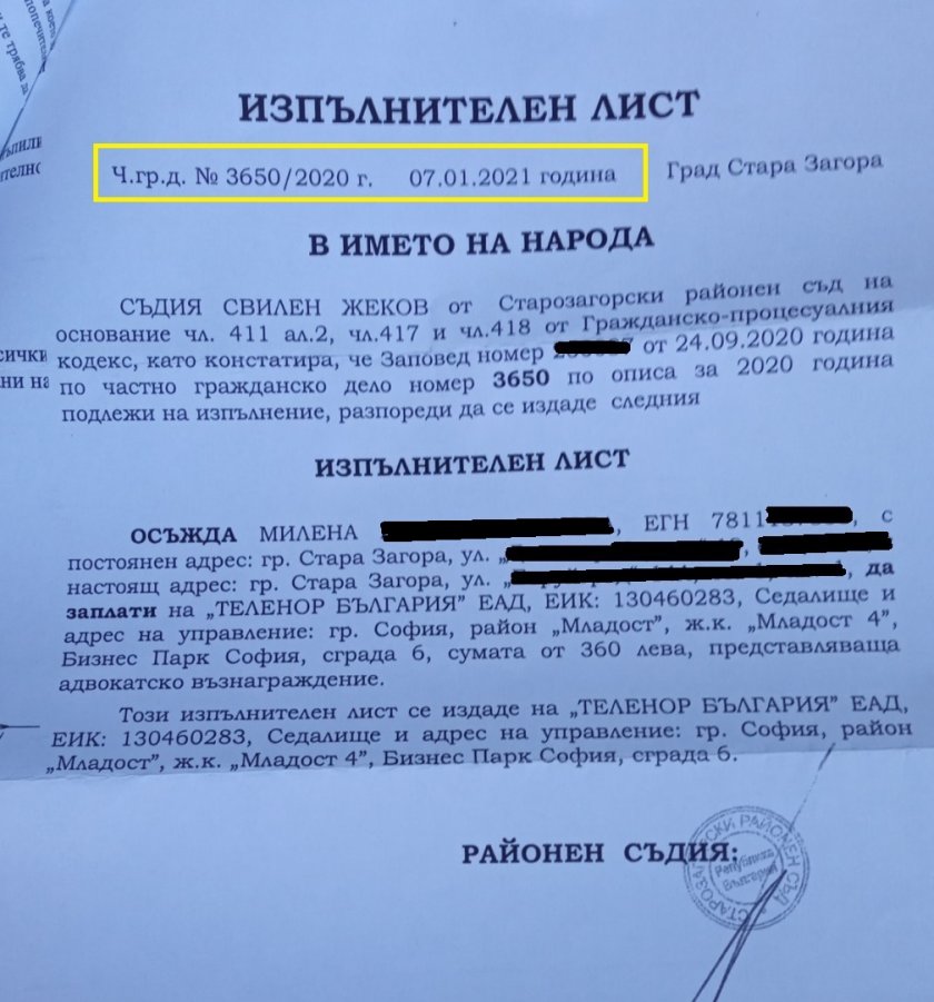 Кой и за какво не си е приключил работата – да кажат способените органи. Но е грозно, когато на платежното за преведената сума правилно е указано защо са преведени парите, а нито Yettel, нито съдът, нито частният правосъден реализатор да се вълнуват от истината. Която слага Милена в унизителна обстановка без никаква причина.