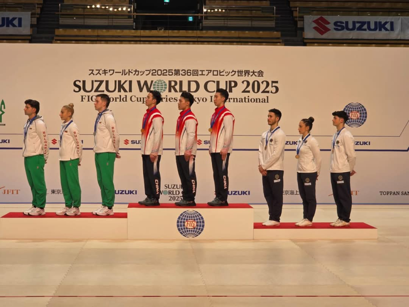Сребърен и бронзов медал за националния отбор по спортна аеробика на Световната купа в Япония