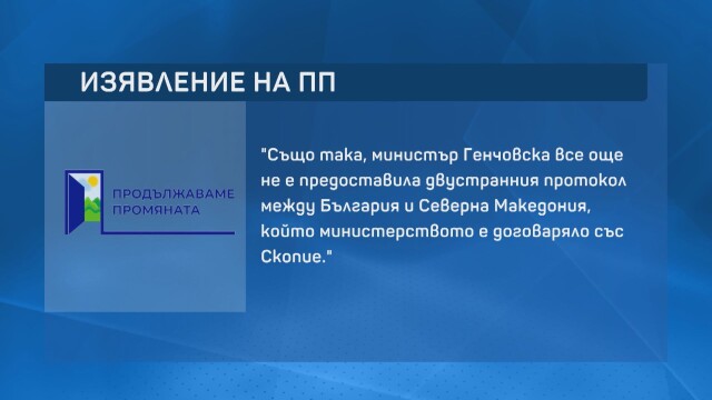 „ Г-н Трифонов заблуди българските жители, че Теодора Генчовска, която той назовава „ предложение на „ Има Такъв Народ ", не е знаела за изискванията в предлагането на Европейския съюз, в случай че тези диалози са водени единствено и само с Министерство на външните работи. Също по този начин, министър Генчовска към момента не е предоставила двустранния протокол сред България и Северна Македония, който министерството е договаряло със Скопие ", пишат от „ Продължаваме промяната “.