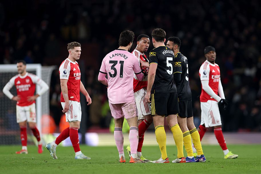 Ново видео разкрива, че спречкването сред звездата на АрсеналГабриел Магаляеш и бранителя на Манчестър ЮнайтедХари Магуайър след края на мача е било провокирано от отхвърли на бразилеца да стисне ръката на англичанина. След последния съдийски сигнал, който означи трагичната победа на Юнайтед с 3:2 на „ Емирейтс “ в неделя, Магуайър се доближава до очевидно разочарования бразилски бранител, който реагира много остро, отказвайки да поздрави англичанина.