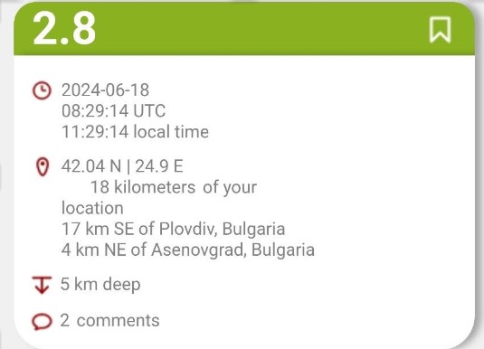 Ново земетресение разтресе Пловдив преди минути. То е с магнитут 2.8 по скалата на Рихтер. Припомняме, че през вчерашния ден в Пловдив трусът беше 4,3 по Рихтер, а по-късно имаше 17 вторични труса, те ще не престават и през идващите дни.