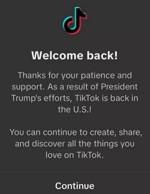 Новоизбраният президент на Съединени американски щати разгласи, че ще възроди в Съединени американски щати, незабавно откакто встъпи в служба в понеделник. Първоначално някои американски консуматори оповестиха, че са имали достъп до уеб страницата на TikTok, макар че самото приложение към момента не е било налично. Но всичко се случи по-бързо от предстоящото - то към този момент работи.