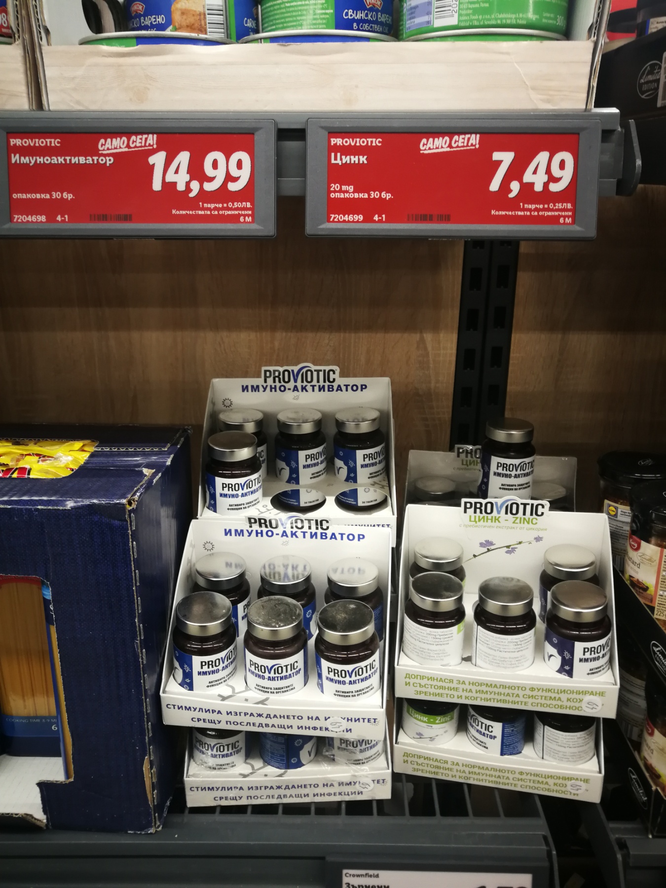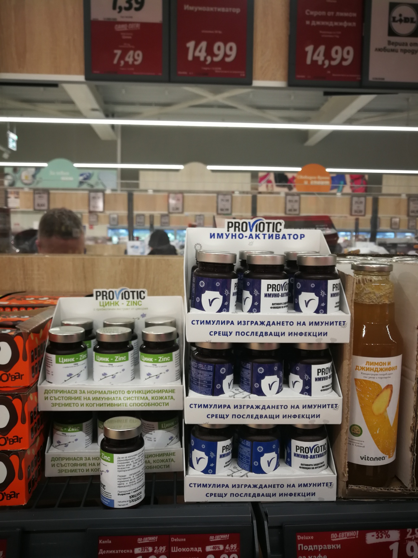Както медията ни първа осведоми своите читатели, предходната седмица в рекламната брошура на " Лидл " се появиха два продукта на веганския " ПроВиотик ". Единият е така наречен " имуно-активатор ", а другият е " цинк ". Цената за първия артикул е 14.99 лева, до момента в който вторият може да бъде закупен за 7.49 лева
