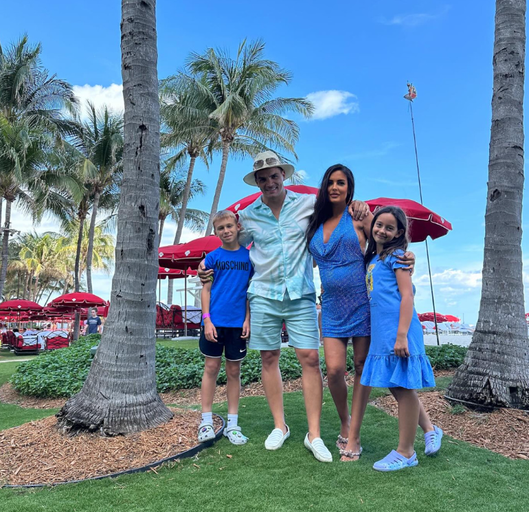 На фотосите тя сияе до мъжа си, а до тях са и децата им – неговият наследник от предходната връзка и щерка й от Боцко – Ема, която е щастлива да живее в Америка.